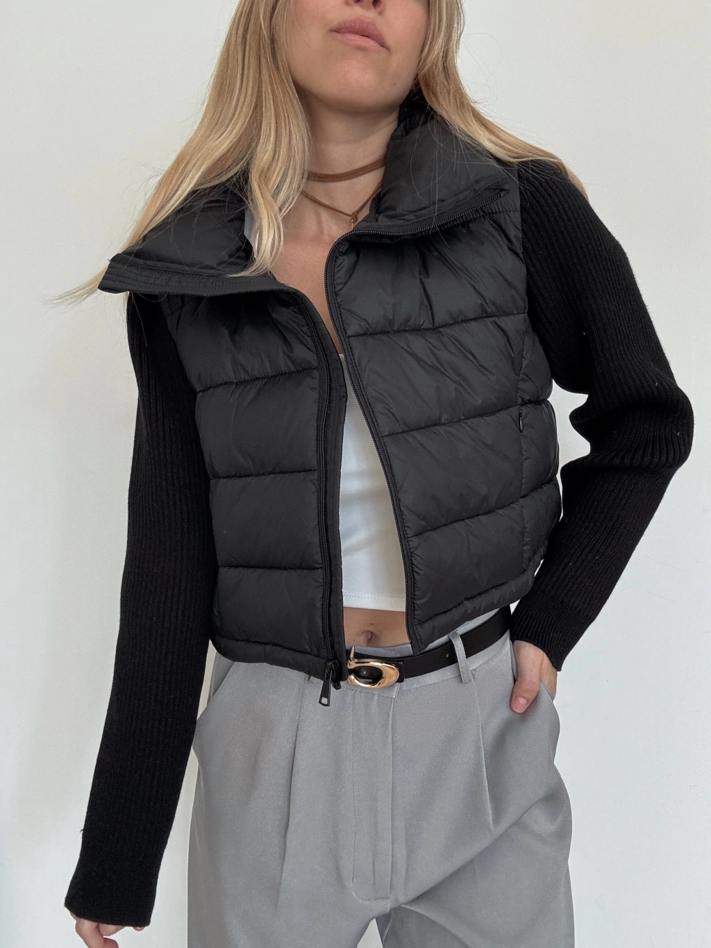 Campera estilo chaleco puffer, con mangas largas en ribb y cuello alto. Contiene acceso por medio de cierre metálico, bolsillos delanteros con cierre invisible y elásticos regulables en cada lado. Material: poliester, 100% poliester. Calidad premium. Es muy calentito y cómodo, te va a encantar!