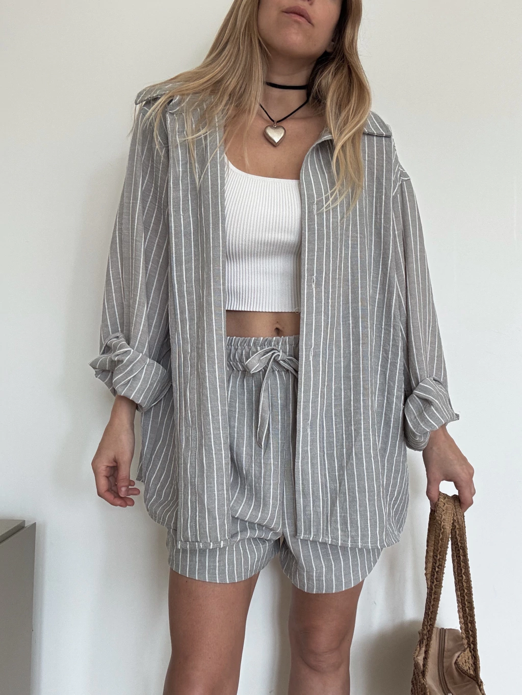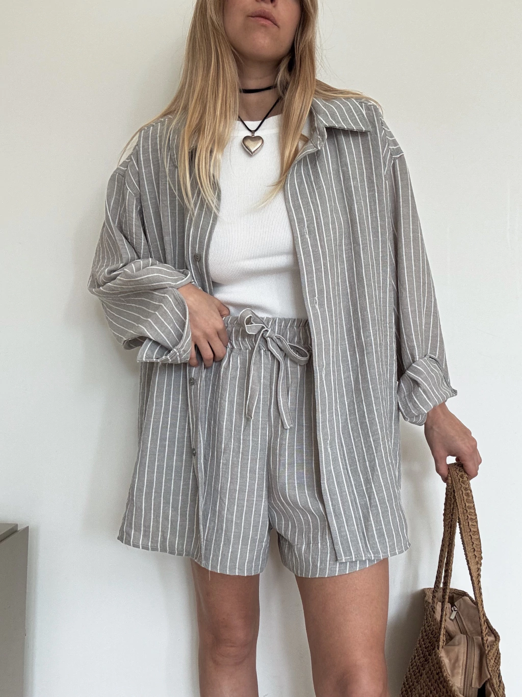 Conjunto de camisa suelta y short tiro alto con elástico y cordón en cintura. Material: algodón voile simil lino, 100% calidad premium. El conjunto es soñado y super fresco! un MUST para el verano, lo vas a amar :) Aclaración: ambas prendas se venden juntas (camisa + short). A modo de referencia: la modelo mide 1.60 y esta usando un talle S.