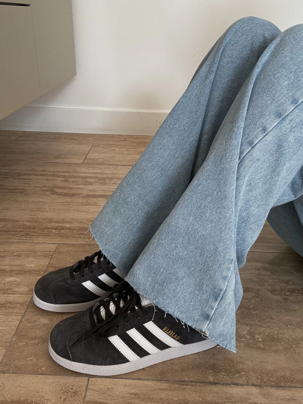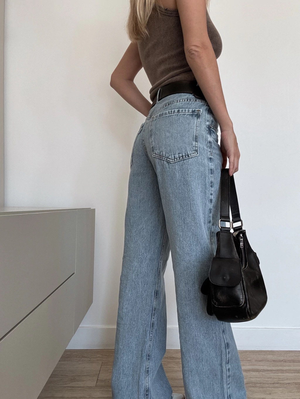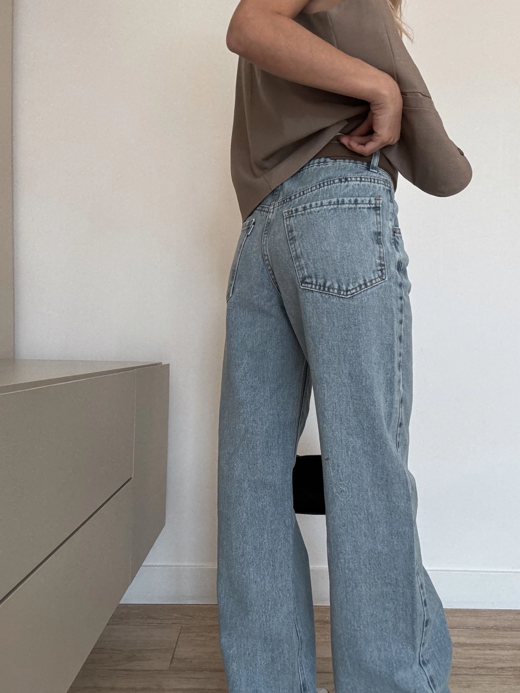 Jean wide leg tiro alto recto con terminaciín sin ruedo. Textil: algodón denim rígido, 100% calidad premium. Super canchero! Lo podes usar de noche con unas botitas o de día con zapas para un estilo más casual. La modelo esta usando un talle 36 y mide 1.60. Para usarlo más tiro bajo u holgado recomendamos elegir un talle más del habitual.