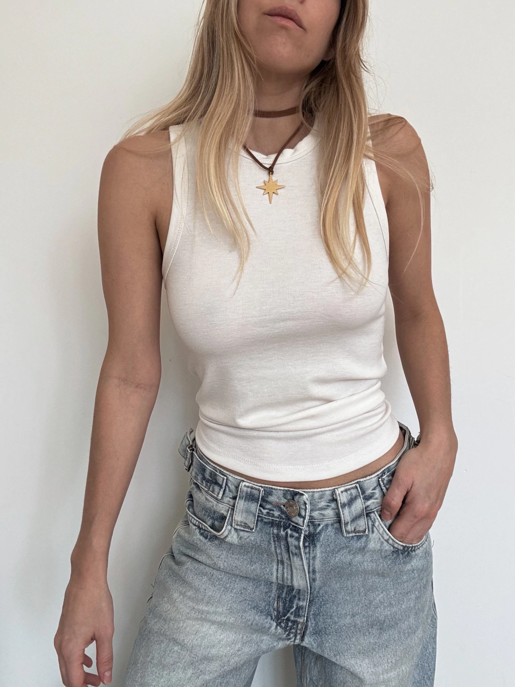 Musculosa básica tipo piel de durazno con escote cerrado y envivados anchos. Tela: jersey soft, 100% calidad premium. Un básico que te completa cualquier look, no falla :) Lo podes usar tanto para el día como para la noche. A modo de referencia la modelo tiene 90 cm de contorno de busto. Es bastante elastizada ;) La modelo esta usando talle Small.