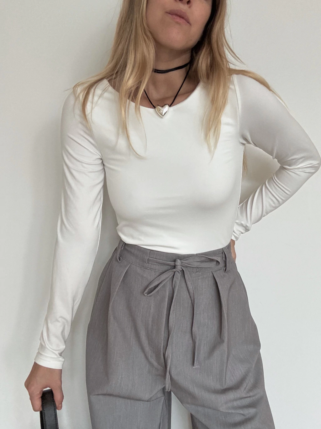 Remera con doble forrado para un calce perfecto sin costuras a la vista. Tela: modal soft, 100% calidad premium. La tela es super suave y al cuerpo, no marca ;) deal para los días de frio, te va a encantar! La modelo esta usando un talle small.